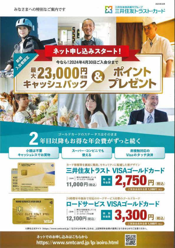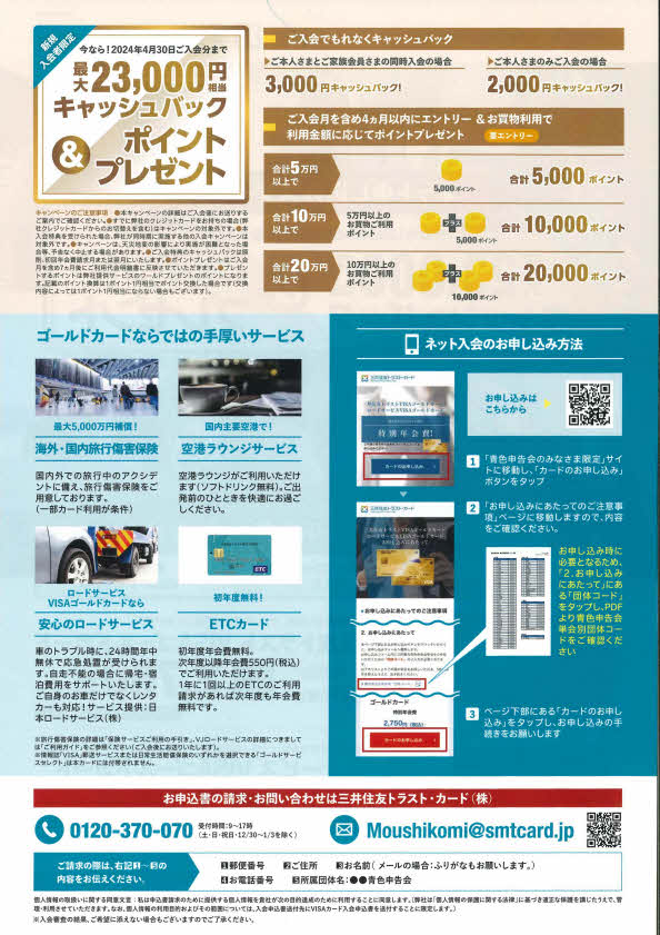 お申込み・お問合せは直接、三井住友トラスト・カードへお電話又は、パンフレットに記載されている方法にてお願いします。お問い合わせの際には、「